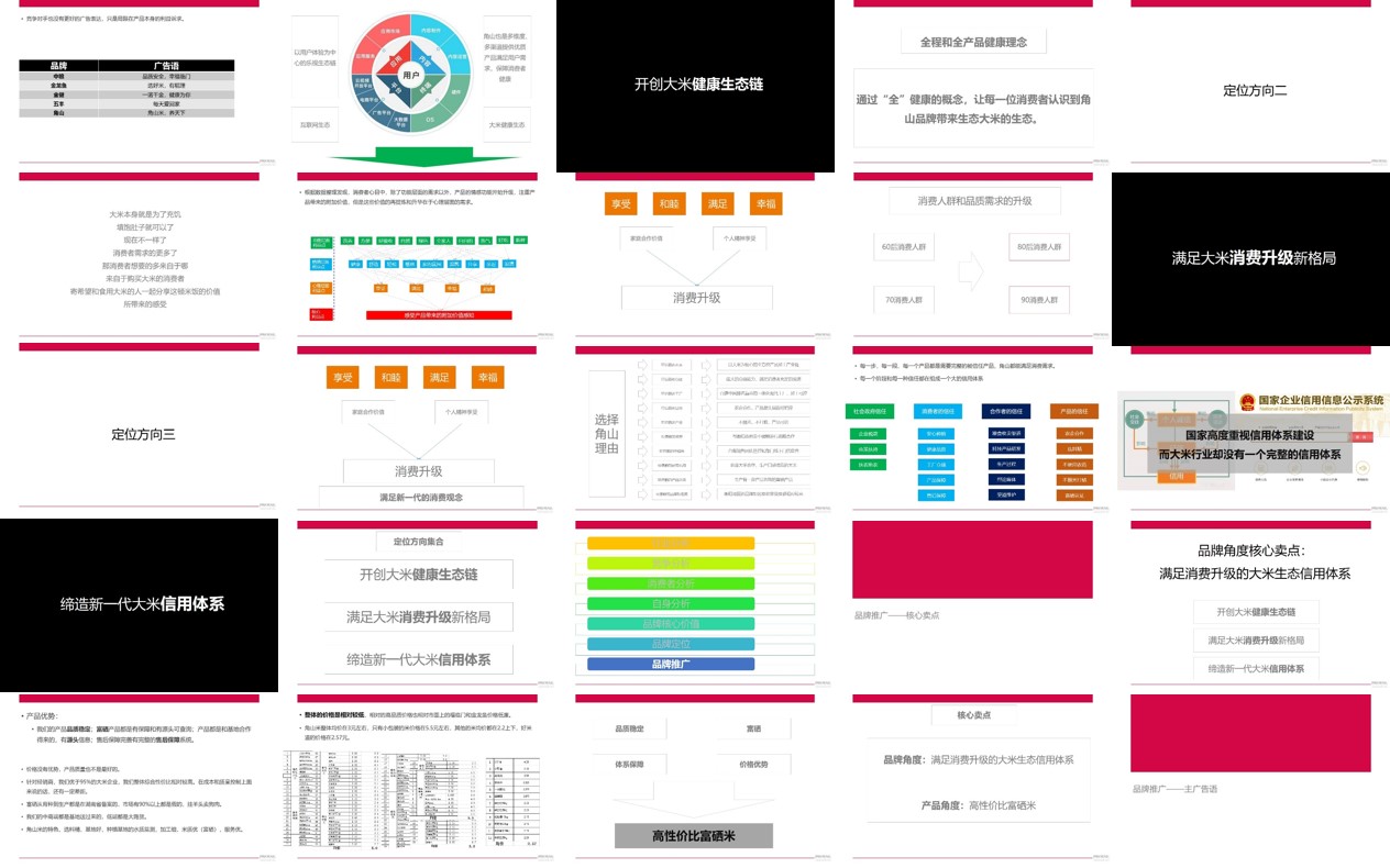 經(jīng)過前面關(guān)于社會問題的分析,了解市場、消費者、公司的情況,我們進(jìn)一步調(diào)研發(fā)現(xiàn),消費者對于安全的注重,對健康、以及情感聯(lián)系的需求越來越高,美御經(jīng)過系統(tǒng)的分析最終確定,角山米業(yè)以大米健康安全為核心,建立值得消費者信賴的大米健康信用體系,采取年輕化的表達(dá),和統(tǒng)一的視覺設(shè)計,采用互聯(lián)網(wǎng)的手段和方式,提高銷量和品牌知名度,打造新消費背景下高性價比的年輕化大米品牌,讓消費者更安心的享受家庭餐桌美味。