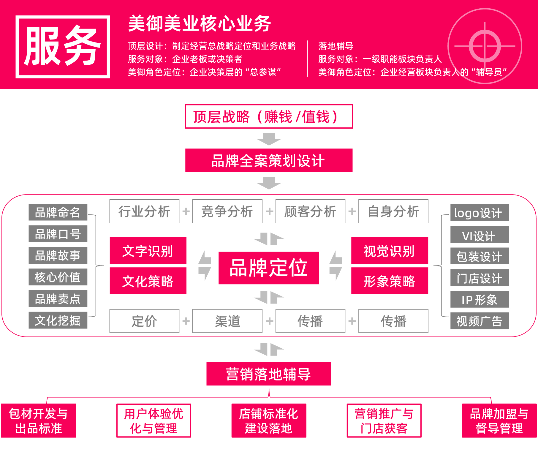 美御團(tuán)隊(duì)在行業(yè)里深耕了17年,美御用品牌“年輕化”戰(zhàn)略體系為成長型企業(yè),提供一站式品牌營銷咨詢方法,贏得客戶一致好評(píng),我們希望客戶在充分了解美御的前提下進(jìn)行合作,所以我們根據(jù)新客戶提出的常見問題做出解答。