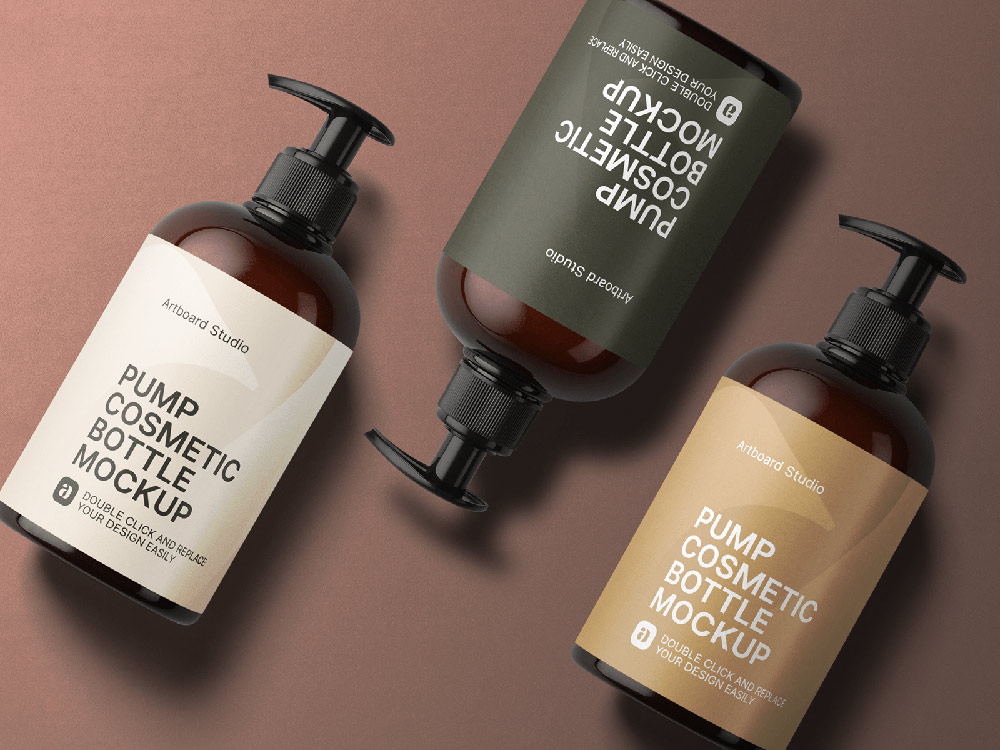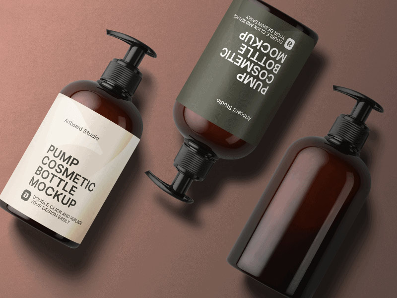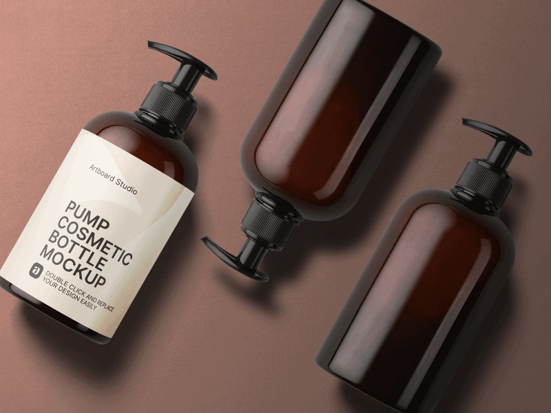 圓形棕色塑料瓶帶壓泵包裝設計,化妝品包材設計,用戶化妝品包裝的泵頭產(chǎn)品,適合做潔面,洗手液,洗發(fā)水等產(chǎn)品