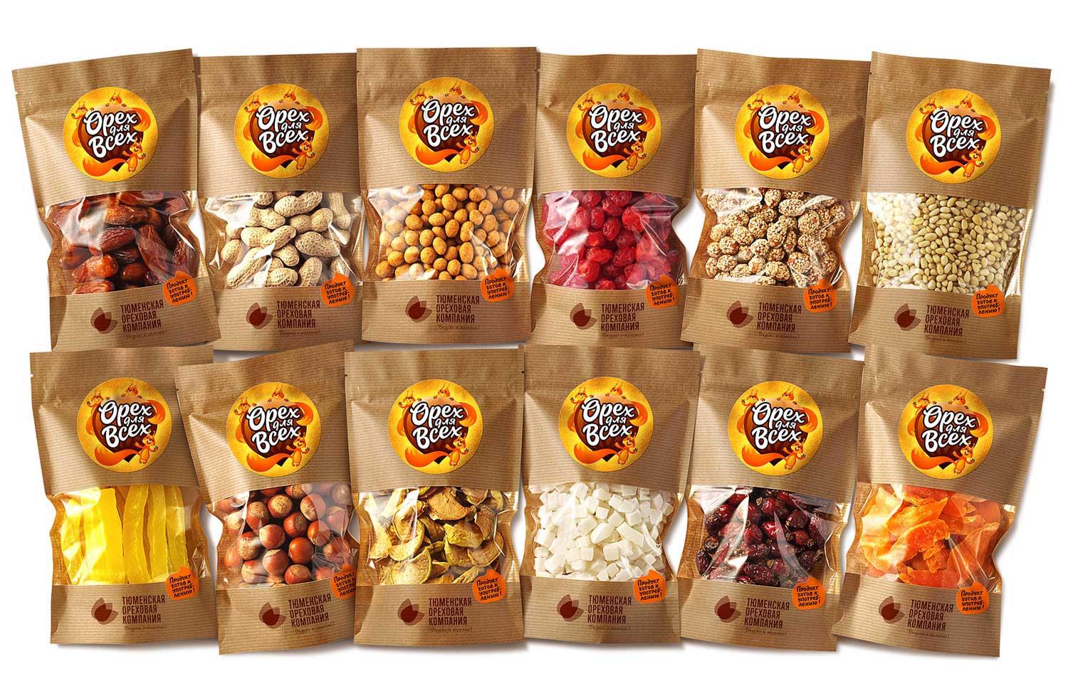 干貨零食產(chǎn)品包裝設(shè)計采用通用標準工藝袋,強調(diào)產(chǎn)品的自然、天然。結(jié)合高質(zhì)量的印刷標簽,該設(shè)計看起來很有吸引力并且符合目標受眾的喜好。印刷時選用的選擇性金蔥光油,閃爍的效果很好地強調(diào)了與啞光和工藝質(zhì)感的對比。