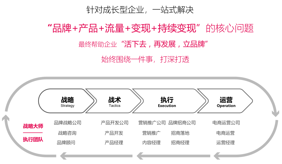 美御以結(jié)果為導(dǎo)向,以年輕化戰(zhàn)略和創(chuàng)新思維為手段,通過創(chuàng)新的戰(zhàn)略打法,從戰(zhàn)略到戰(zhàn)術(shù)、從執(zhí)行到運營,為成長型企業(yè)量身定制,通過貼身服務(wù)、深度綁定,一站式解決“品牌+產(chǎn)品+流量+變現(xiàn)+持續(xù)變現(xiàn)”的核心問題,幫助企業(yè)“活下去、再發(fā)展、立品牌”!